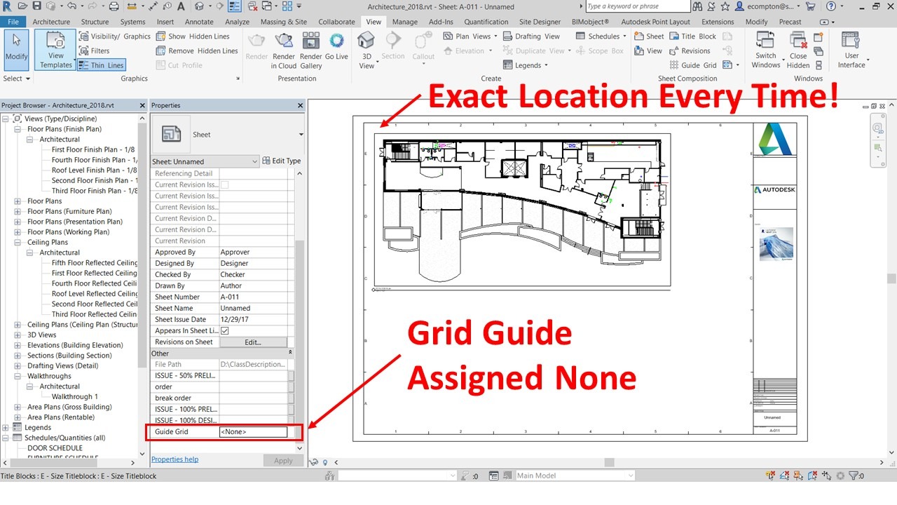 6. Repeat this procedure for all your plan sheets & set the Grid Guide Sheet Property to None to turn it off