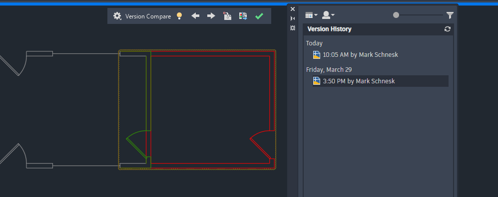 If you save drawing files to a OneDrive, Dropbox, or Box account, additional versions of these drawing files are created as you work, creating a version history. The previous versions will be listed in the new Drawing History palette so you can compare them with the current version of your drawing.
