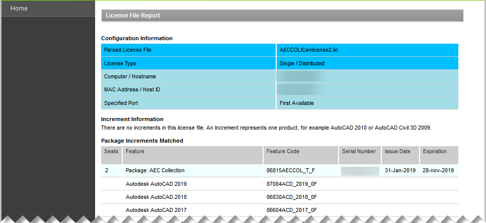 Here you will get a comprehensive report about the content of your license file, as well as expiration date.
