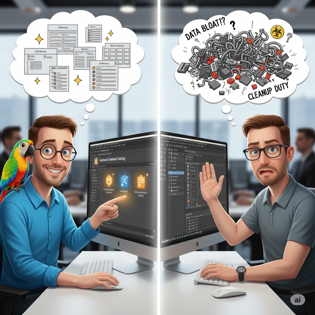 Today, I’m going to have a little chat with myself – or rather, my two alter egos: “Optimistic Ollie,” who sees the bright side of every software feature, and “Skeptical Sid,” who’s always ready to point out the potential pitfalls. Our topic? The Autodesk Content Catalog for Revit, and whether it’s a blessing or a burden for AECO firms.