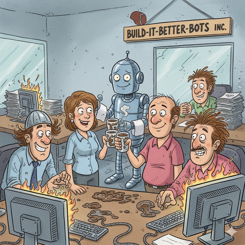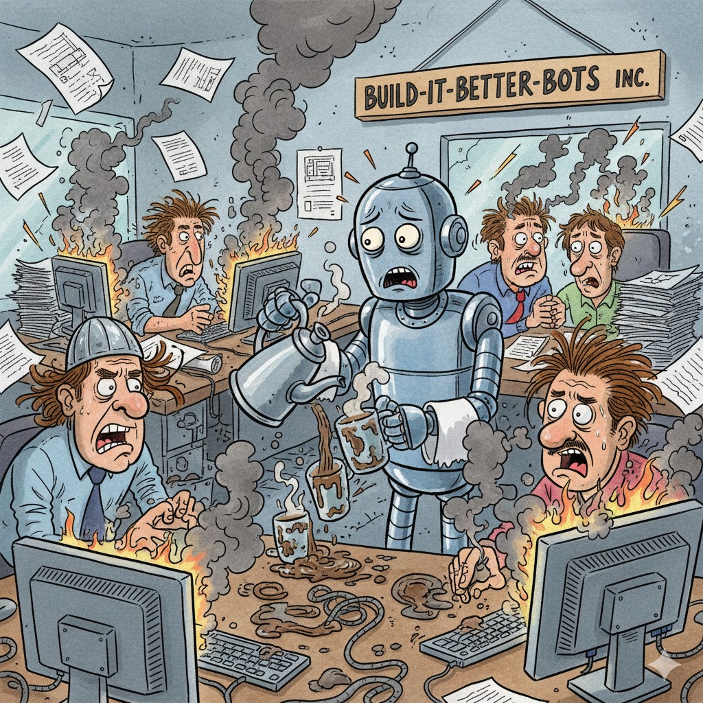 Enter our brilliant (and slightly unhinged) CEO, Mr. Bumble. He declared, “We need AI! We need custom workflows! We need… less screaming!”